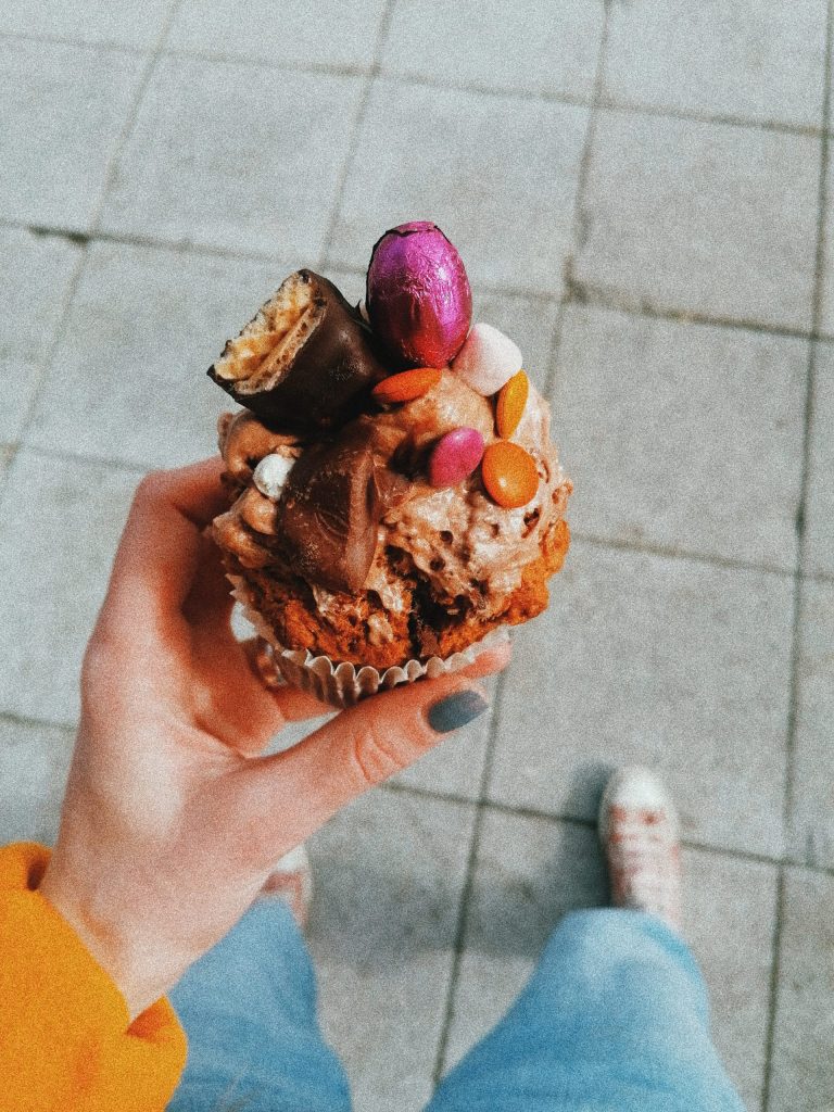 Gently but quickly dunk and twirl the muffins in the topping, add some decorative treats and allow them to set (don’t worry it’s fast).