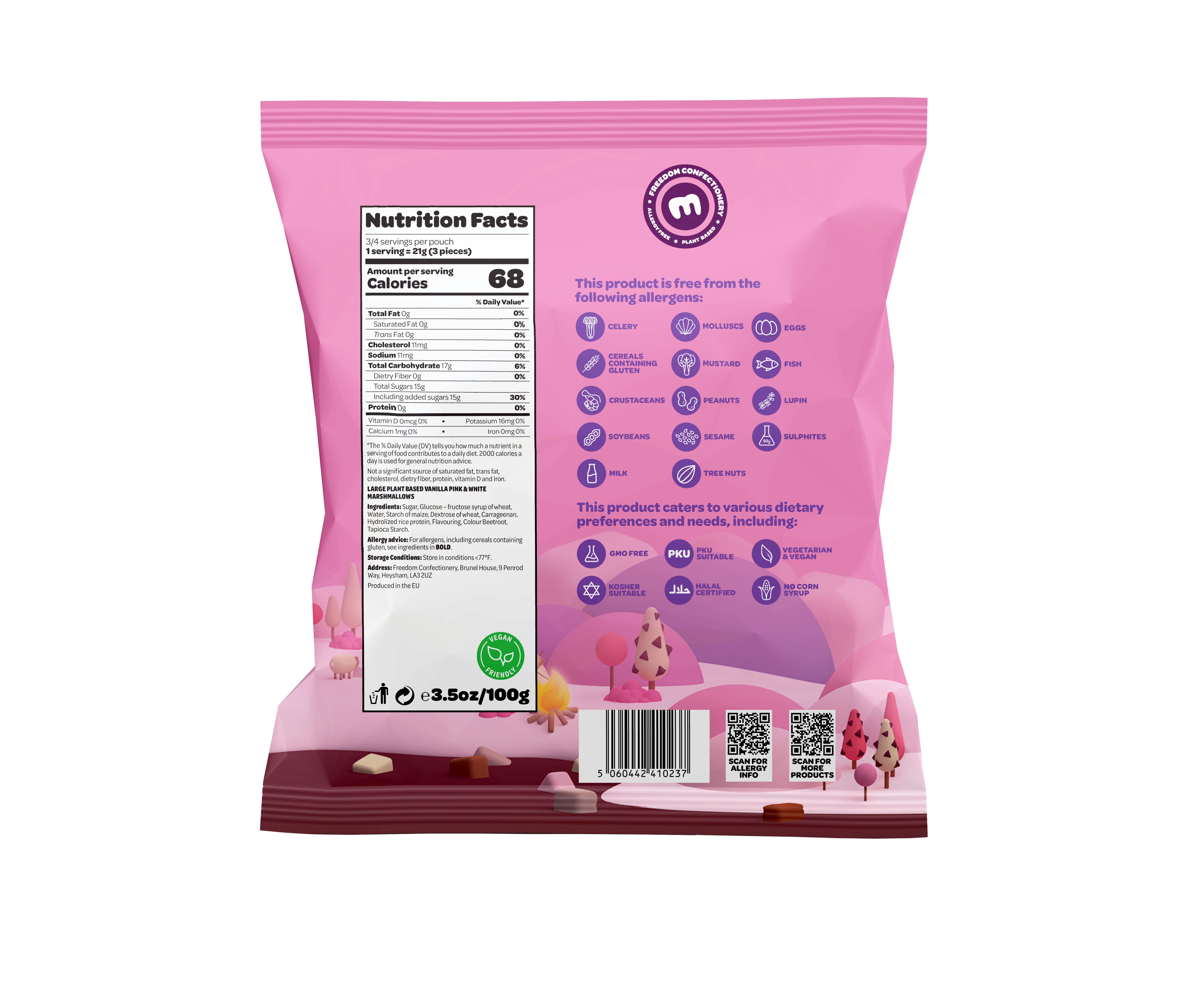 Freedom Confectionery offer The World’s Only All-Inclusive Marshmallows & Gummies – Leaving Nobody Out Whether Following an Allergen, Dietary, Religious or Lifestyle Diet. Freedom Confectionery’s Products are Plant Based; Top 14 Allergy Free-From*; Halal Certified; Kosher & PKU Suitable and made Without Artificial Flavours, Colours or Corn Syrup.