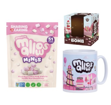 Indulge yourself in a Rich Luxurious Hot Chocolate with a Marshmallow Explosion of Mallowy melt in the mouthiness mini mallows, in your very own exclusive Freedom Mug. All Freedom Uncoated / Naked Marshmallows are Gelatine Free, Gluten Free, GMO Free and we only use Natural Colours and Flavours.